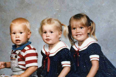 It looks like I have very few pictures of Sean… This one was taken back when my parents had only the 3 of us… Me, Jennifer and Sean… and mom actually had our pictures taken! It is old (like us!) and scratched up, but I thought it was cute just the same.