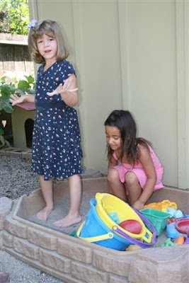 After crafts, the kids all played together. My children just love the tree swing and the trampoline… (And the castle… and the sand box… and the sidewalk chalk… and everything!) They had a blast, like usual!