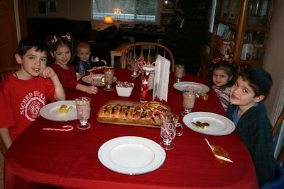 For lunch we had St. Nicholas Pizza. (I meant to take a picture after it came out of the oven, but I completely forgot!) This was a hit, and I am sure we will be making it again.