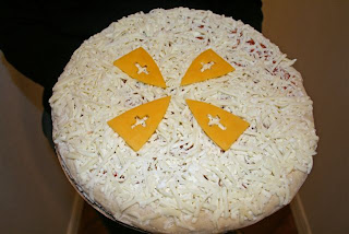 Sarah ~ I just used my cheese slicer to slice a few pieces of cheddar cheese, and then a plain ol’ knife to shape it into a miter and cut out a cross! It was very easy, and my kids loved it!