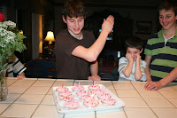After the party we headed to town to pick up our heart shaped pizzas, meet up with daddy after work, and then, it was out to Grandpa and Grandmas for a last minute BIRTHDAY PARTY for my not so little anymore BROTHER Scott!!! You just can’t NOT have a birthday party on your 18TH BIRTHDAY!!!!!! So, we arrived with the rest of our cupcakes, and the pizzas to celebrate!! Scott was determined to get ALL those candles out and was swinging away with his hand, much to Rascal’s enjoyment, once he ran out of breath! I just want to know what he wished for that he wanted so badly!