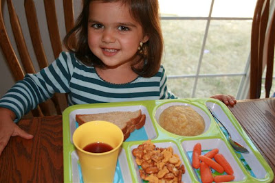 I love the cute trays! And you have great lunch ideas. My girls actually love soup, so we have that quite often, especailly right now as the older two are on an “I don’t like sandwiches” kick right now. I actually have a menu plan for breakfast and lunch, just like I do for dinner, because it simplifies things for me. I hate walking into the kitchen and having to think about what I am going to make, and the kids always take that as an invitation to tell me what they want for lunch, which is generally something different for all three. Then two are inevitably upset that I didn’t make what THEY wanted… So, Monday breakfast is cereal, Tuesday is eggs, Wednesday is bagels, Thursday is pancakes, Friday is oatmeal. Saturday we always have a big breakfast because Daddy is home, and Sunday is another bagel day because there’s not much time in the morning! Anyway, same idea for lunch… PBJ/PBHoney, Tomato soup, Black bean soup, Devilled eggs, tuna sandwiches, deli meat sandwiches, and leftovers.