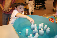 From various starting lines made from tape, depending on the size/age/ability of the child, the object was to toss a bouquet of roses through the hoop. If necessary, adjust the height of the hoop for the little ones, or just have some one lift them up! 😉