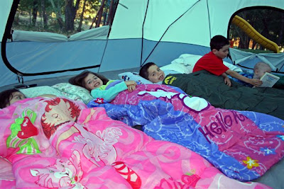 Looks like fun! Can’t wait to get our own children into a tent for an overnight! Must be nice to have Daddy/your husband home! God bless!