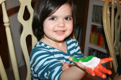 Gosh having all the fun without me!! Somthing i have never done: made hand marks with paint.