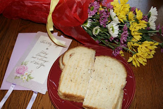 My hubby and boys gave me a yummy tuna sandwich, flowers, and beautiful cards. (Plus a couple more awesome gifts after we had cake!)