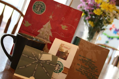 Even though my birthday came and went a week ago, my friends continue to spoil me!! Last night, at Little Flowers, Amy surprised me with a lovely little gift bag containing a beautiful mug, a Barnes & Noble gift card, and the most delicious smelling freshly ground coffee EVER!! I keep picking up the packet just to smell it! YUM!!!