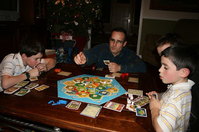 My brother David (pictured on the left) is awesome at The Settlers of Catan. We’ve played it with him twice (so far) and he won both games!! Argh!! I am not at all competitive! 😉