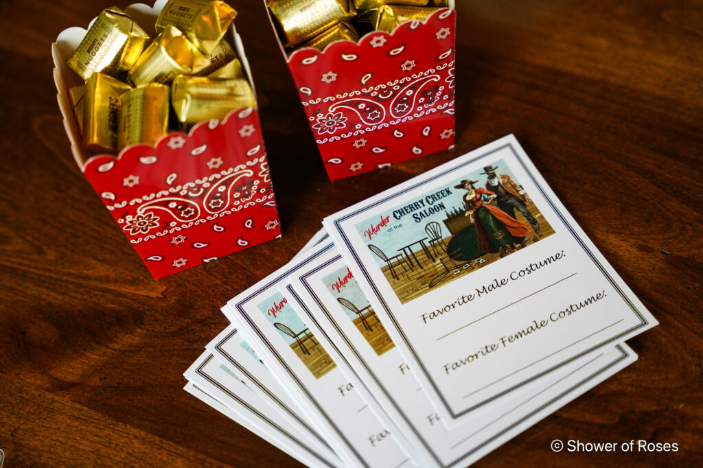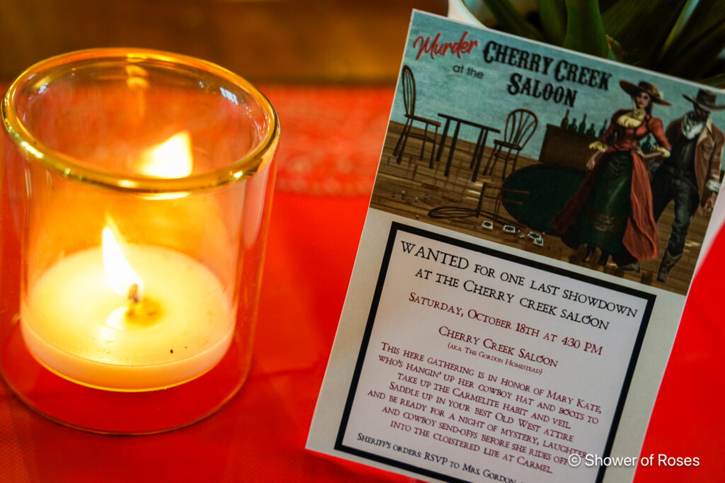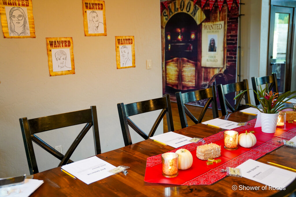 We decided on a Western Theme (perfect for her!) and she and our oldest daughter worked on the guest list and assigned the suspect roles while I worked on the rest of the planning. It was so much fun, and the “best one yet!” according to some of our guests. I hear that each time!