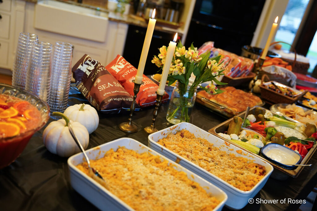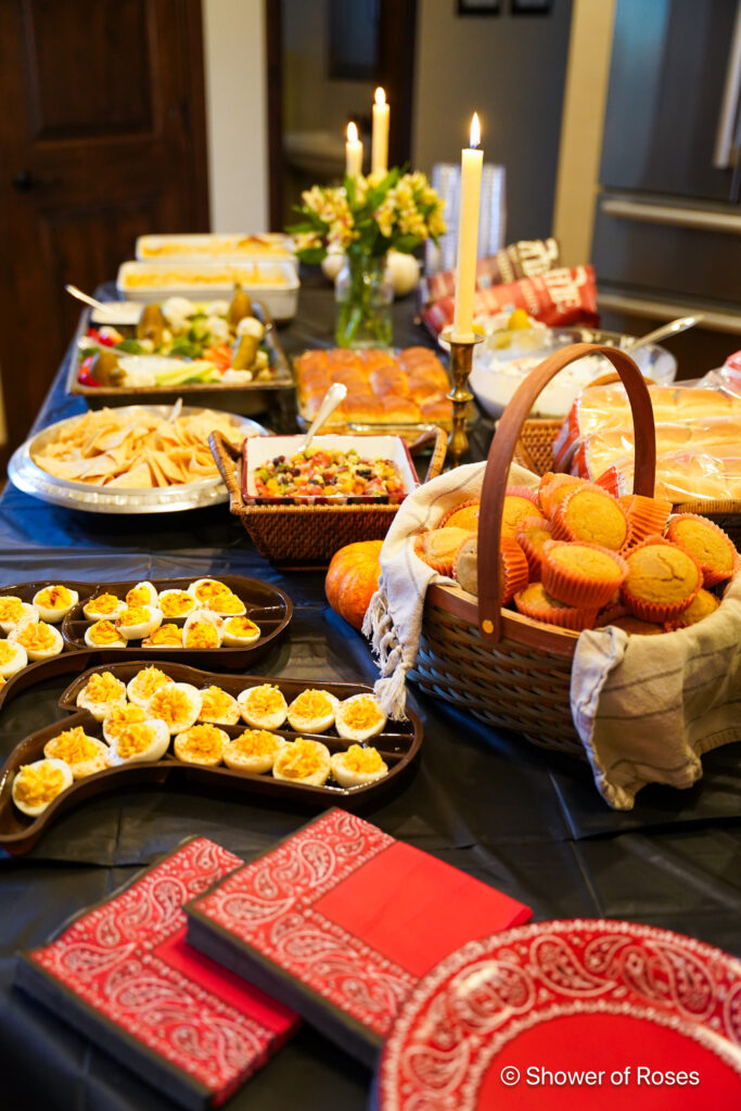 I planned to make Chili for a Crowd (double batch), Cherry Punch (Mocktail), Texas Sheet Cake, Cowboy Caviar, and pick up all the paper goods/silverware. But with a crowd of 35 expected, I used Sign-Up Genius to make providing food and drinks for such a large crowd easier on me, like I did for the other two going-away Murder Mystery Parties. The guests were all more than happy to help and we had plenty of food and drinks to last through the evening!