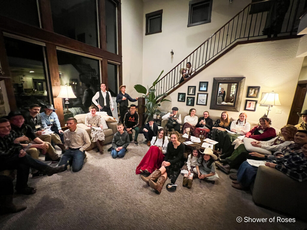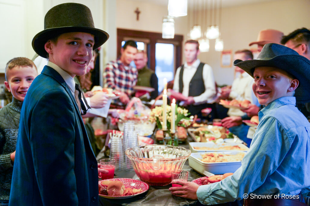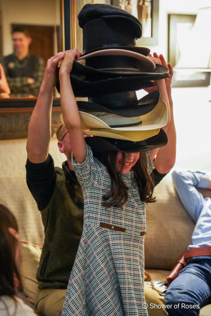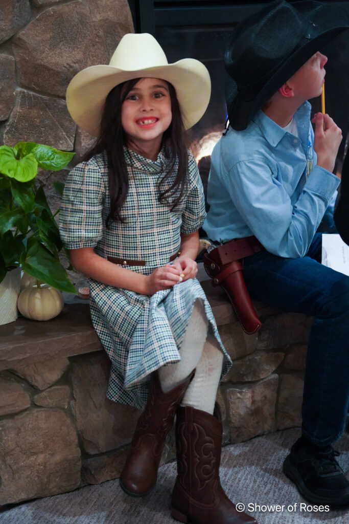 This here gathering is in honor of a (sweet girl), who’s hangin’ up her cowboy hat and boots to take up the Carmelite habit and veil.