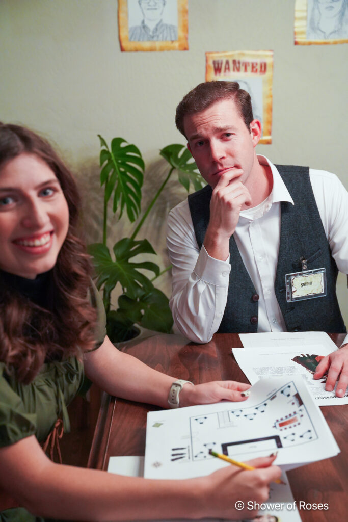 This is our baby. Leigh created this format over 2 decades ago to cure all the things she disliked about traditional murder mystery games, so if you see these terms on other mystery sites, this is where the format came from… and yes, we did innovate the entire mystery party game industry, as many of our competitors have since taken our format and tried to duplicate it.