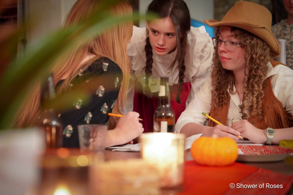 Hi, my name is Jessica, and I apparently throw Murder Mystery Going Away Parties for young adults entering Carmel… 🤔🤦🏻‍♀️😅 I haven’t blogged the other two yet, but I threw one in December of 2022 for my girls’ dear friend Rosie when she entered Carmel, and another for their friend Ben when he entered a Carmelite Monastery in December of 2023. When I heard that Ben’s younger sister (another dear friend of my girls) was entering Carmel as well, I asked her at our 18 year old’s graduation party this summer if she’d like one too. The answer was YES!!!