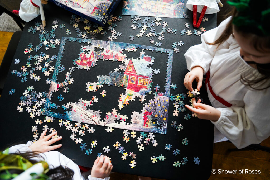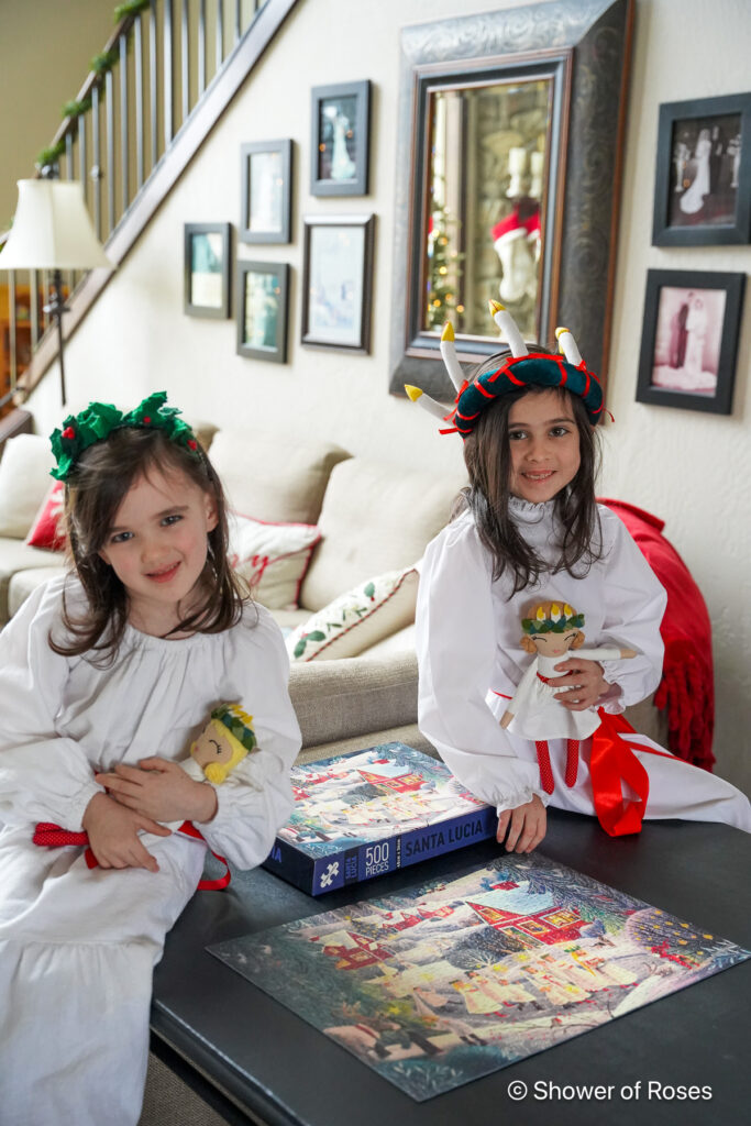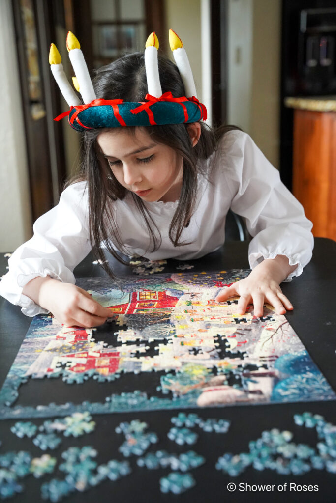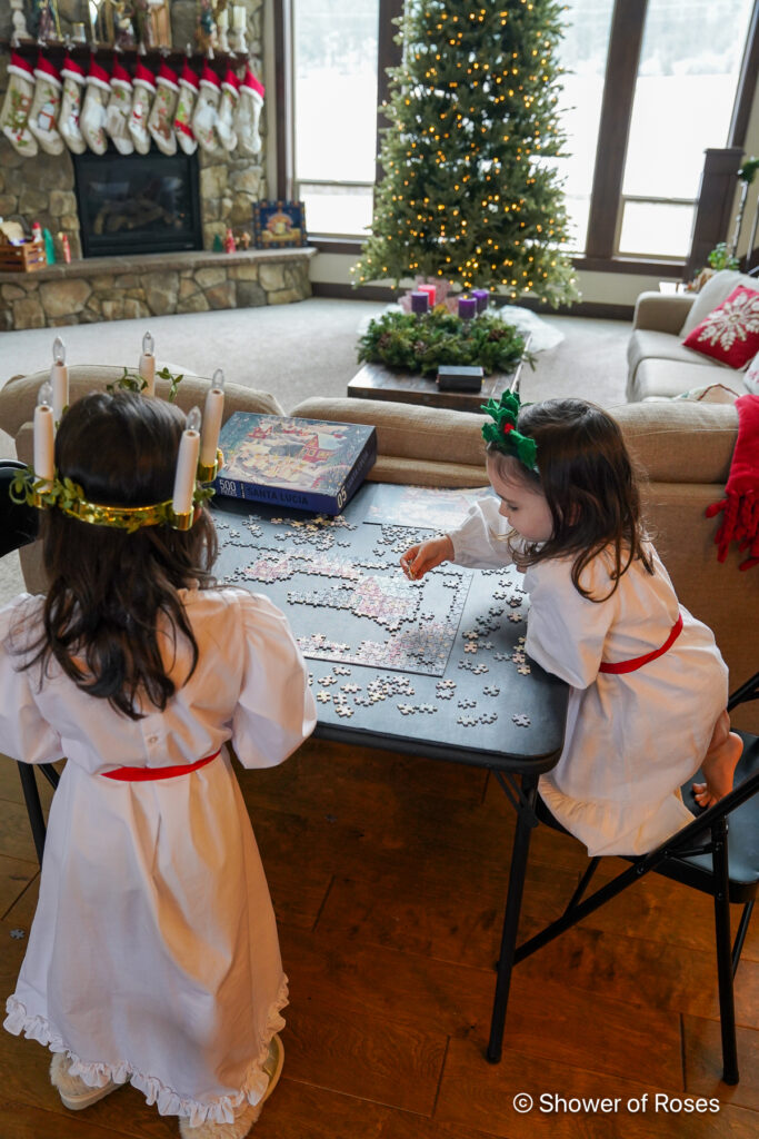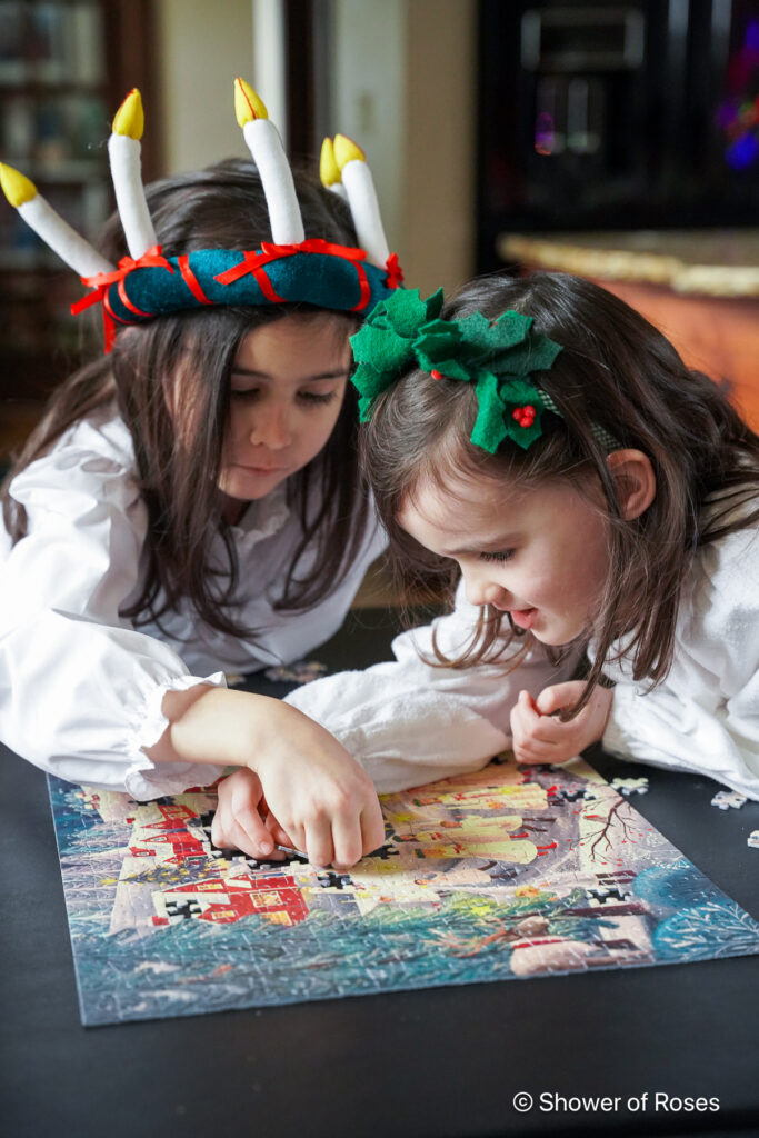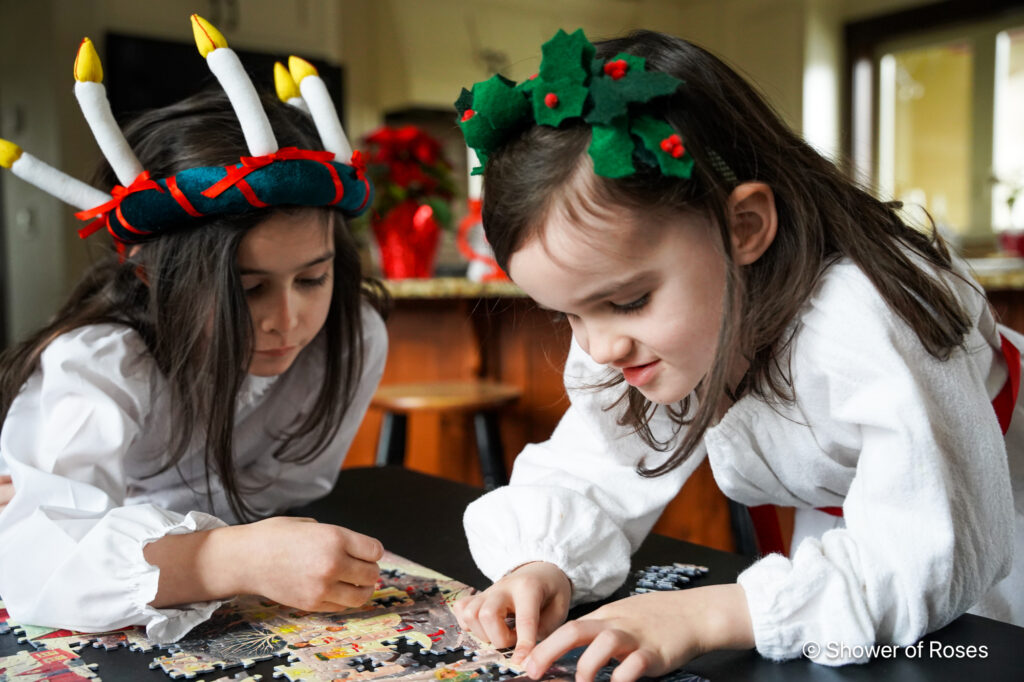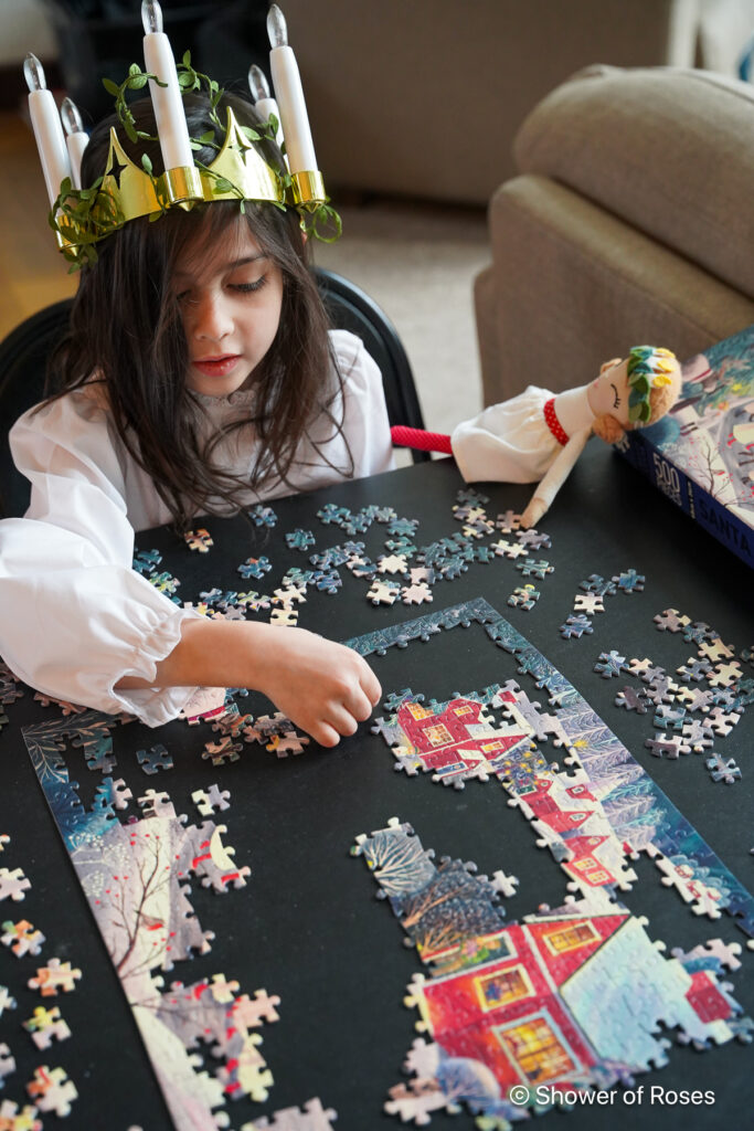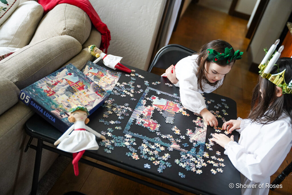 The Dala Horse puzzle they received this year is also really cute (the kids finished it in like a day last week!)… and they will discover this Swedish Holiday Kitchen one tomorrow for this year’s feast of St. Lucy!
