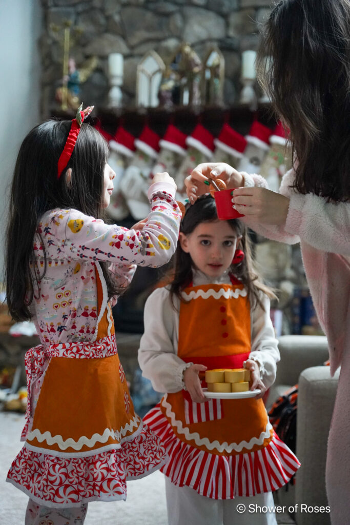 As soon as the girls opened the box they were so excited. I grabbed my camera to snap a few photos as they started serving St. Lucia buns and pouring glögg for each other and for me too! Here are a few adorable moments I managed to capture…