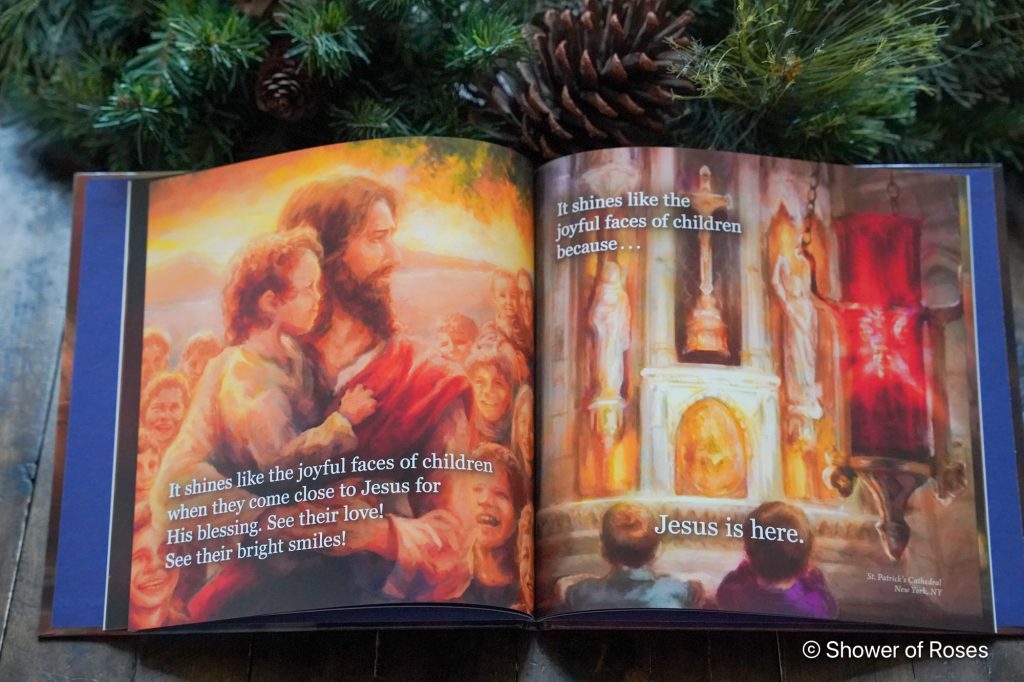 The little girls will also get to unwrap this beautiful and inspiring new release from Sophia Institute Press: This Little Light of Thine: Stories of the Sanctuary Lamp. Also available at Amazon here.