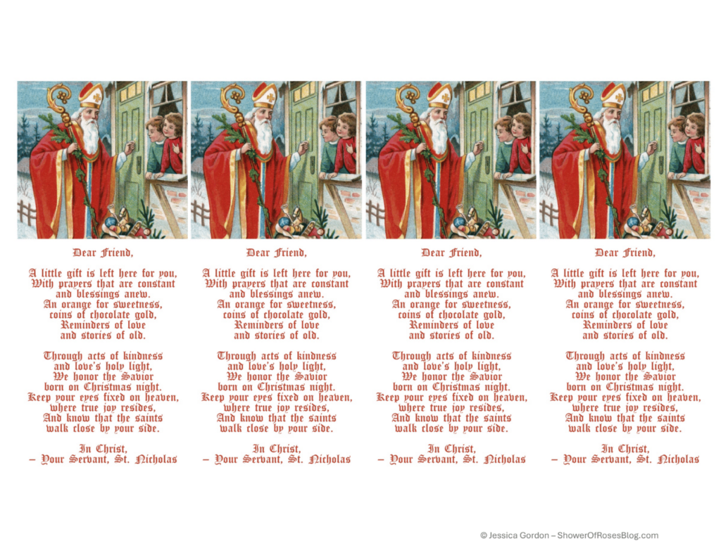 Last year our daughter wrote up a “letter from St. Nicholas.” I formatted it, added a picture, and printed them on cardstock, to tuck inside each bag. They’re available for you to download for free here if you’d like to use them too.