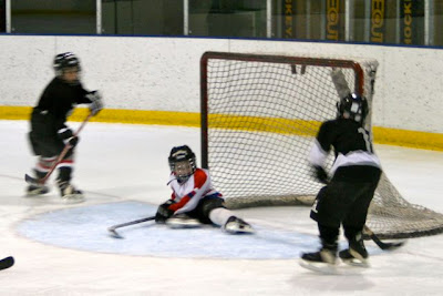 Captain is on the left and Rascal is on the Right. They are really enjoying Hockey and have improved so much since the last time I was able to stay and watch!