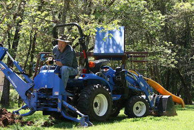Let me just say that, when you aren't exactly sure where the septic tank is, yet know that it is buried under at least 3 feet of dirt, it sure helps when Dad is willing to bring his tractor over to help! The good news is that my Dad & Hubby were able to find the tank pretty quickly and it was emptied a couple hours later. The bad news is, we still have a stinky problem under our house. :-(