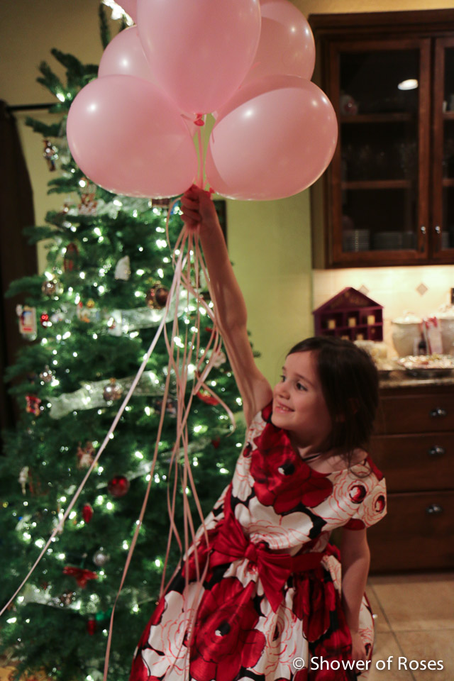 On Christmas Eve we had a fun surprise for the kids and our extended family who came over for the evening before we all headed to Midnight Mass! Last Wednesday afternoon I called the doctors office for the results on some blood work they did a couple weeks ago, including the answer to whether the baby is a boy or a girl... The nurse asked me what I thought it was, and then told me I WAS RIGHT!!! Sean went down to the store and had a bunch of color coded balloons filled with helium to wrap up in a large box. (He actually had a whole bag filled, not realizing I just wanted one for each kid, but it was a hit and definitely made a statement!) My sister JoAnn videoed the exciting moment and I'll share that over on Instagram. I won't make you all wait any longer... It's time to OPEN THE BOX!