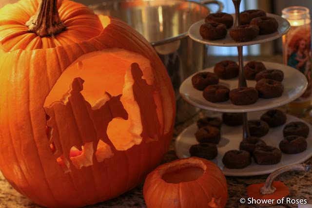 I took these pictures on our way to our parish's Trunk-or-Treat and Carnival last Friday night and our children will be wearing them again this evening when we head out to my parents home for the evening. This is the first year in many years that I won't be hosting our annual All Hallows' Eve party... I'm really sad that I had to cancel it, but I've between working on my health and working so many extra hours, I just don't have the energy this year. Our kids all understand and are very excited to go out to Grandpa and Grandma's. I just got off the phone with my mom and she is busy in the kitchen making Soup, Chili, Spice Cake, Rice Krispies Treats, and even Caramel Apples! I'll be bringing along a few games including