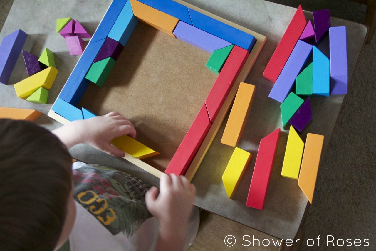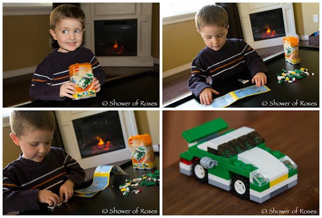 He sounded out the names of four pictures and figured out which three began with the sound "c." He also made the letter C with Wikki Sticks and our Wooden Letter Pieces.