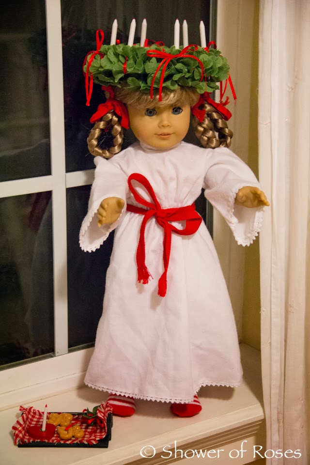 Rose kept pulling me back to all the beautiful ROSE COVERED (It was during my novena to St. Therese and roses were turning up in random places each and every day!) furniture and accessories in Samantha's collection and we ended up choosing Samantha's Holiday Set to take home. Isn't it precious?!