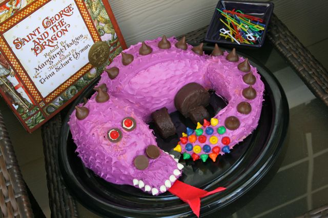 *Since the feast of Saint George falls on Holy Saturday this year, and since we have so many other family traditions on Holy Saturday, I don't think we will be making our dragon cake this year. I think I might make a Taco Dip Dragon instead, if anything. We will have to come up with another reason to make a dragon cake this year!