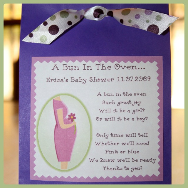 One of the games we played at the shower was a "Bun in the Oven" Dress Game. (I ran across this the idea at Labels Buy Design.)