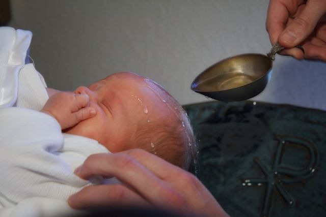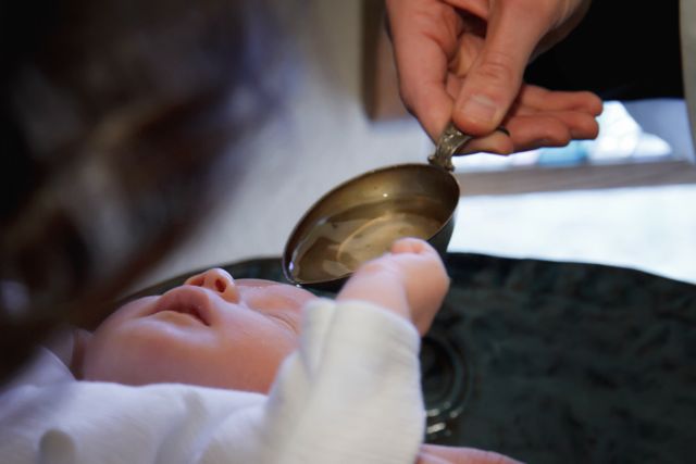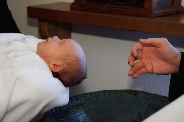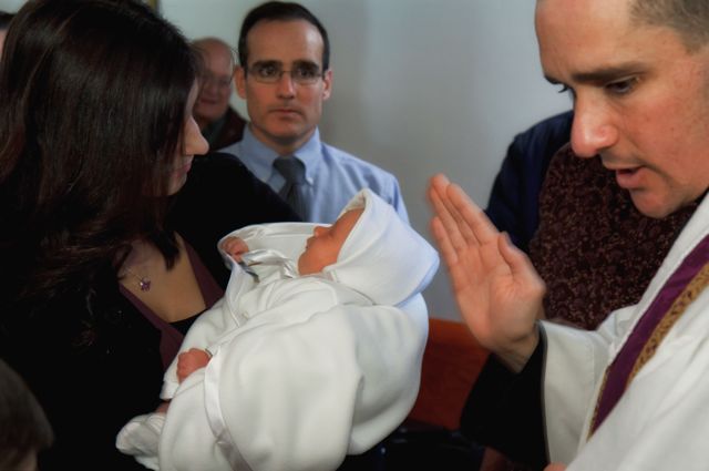 If the one to be baptized is a baby, the godparents take him to the font (the godmother holds him in her arms, the godfather touches the baby's shoulder with his right hand); if he is an adult, the sponsor puts his right hand on the shoulder of the one to be baptized.Priest: N., will you be baptized?