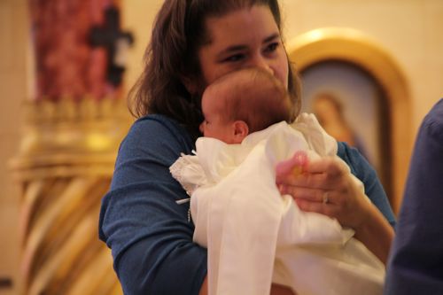 After the baptism we were talking about how she started crying/screaming during the exorcism and stopped immediately after the following Imposition of Hands. Father said, "Who knows, maybe her heart is all better now that she is baptized!"