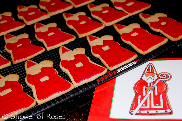 Even though we do have a few various St. Nicholas Cookie Cutters, we opted to copy the pattern provided on the back of our book.