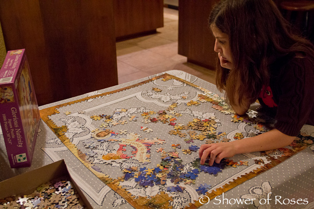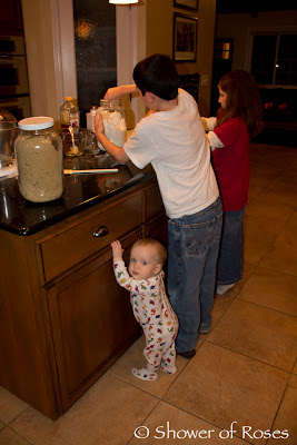 *I'm including this picture just so you can all see the piles of random items on my counter at any given time... (And show you why I've been hesitating to post any more of the gift ideas I have for my children this year, since I frequently find the kids reading my blog!)
