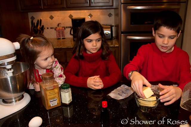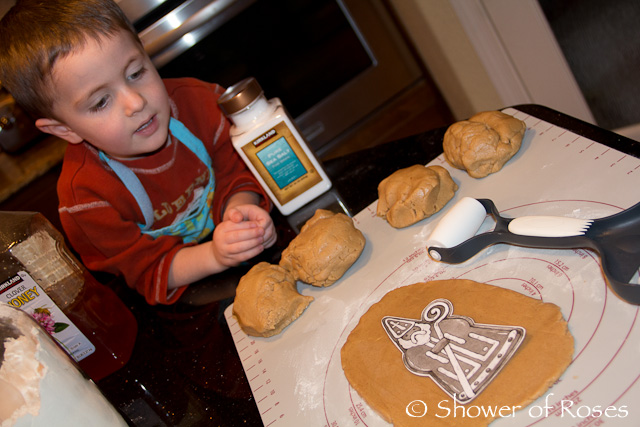unwrapped The Baker's Dozen: A Saint Nicholas Tale (a fun tale about generosity and the origin of the term 'baker's dozen') for us all to read together. After reading the book the we baked Saint Nicholas Cookies using the recipe provided along with the template from the back of the book!