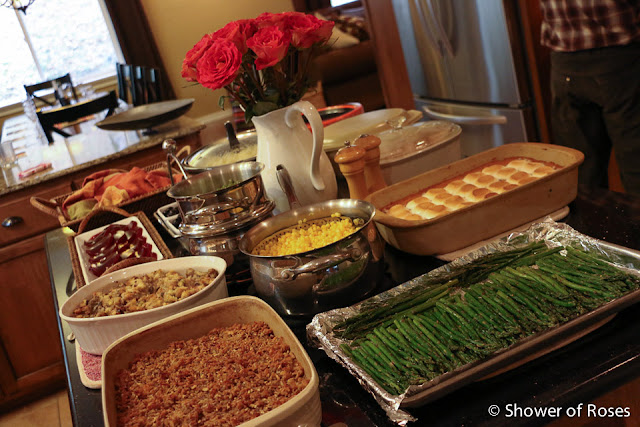 I couldn't believe I got talked into hosting Thanksgiving dinner... I can't even look at uncooked meat without getting sick at the moment! ;) Thankfully my mom brought the turkey and sweet potatoes, and sister-in-law brought all the desserts and rolls. That just left the ham and other side dishes for me my kids to cook! It all came together. So grateful for lots of help!