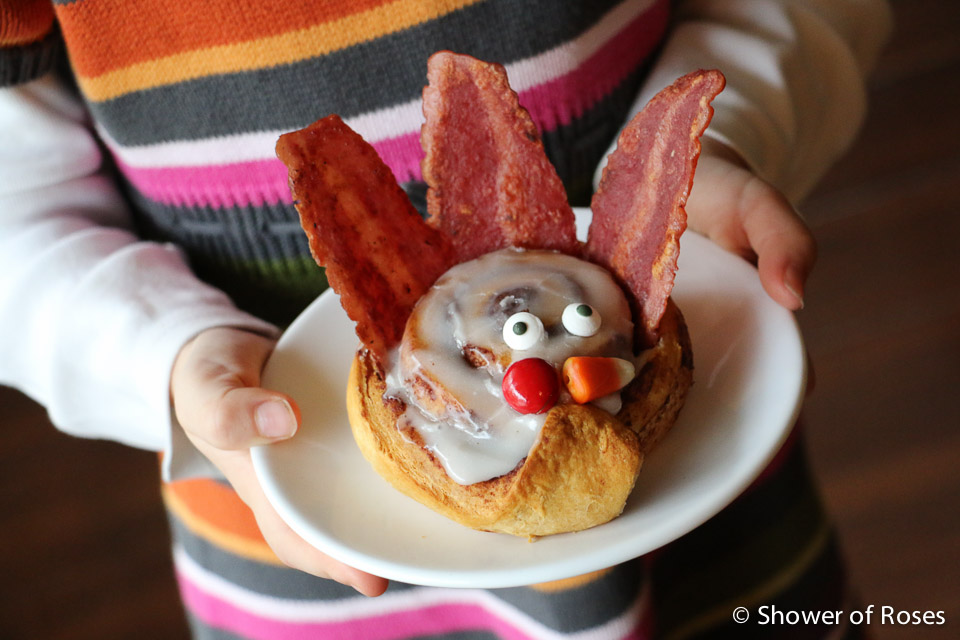 Cinnamon Roll Turkeys for brunch! This year we skipped the pretzels (I forgot to pick them up) and used dye-free Pumpkin Spice Little Secrets for some of the decorations.