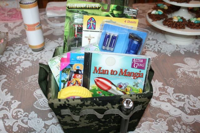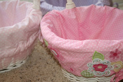 After the fact, I was thinking how neat it would be to sew your own basket liners and mail them to Catholic Embroidery for personalization - perhaps with the child's patron saint symbol, or a catholic quote!