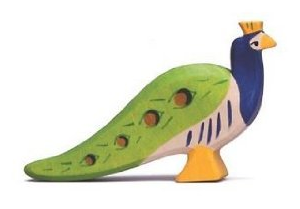 Originally I planned to purchase a cute little wooden peacock that I ran across on Etsy. I placed it in my cart and meant to go back to place the order once I had a little money in my Paypal account, but someone else beat me to it. Oh well. Instead I found the another little wooden Peacock made by Holztiger.