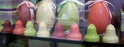 Bells: "In countries like France and Italy the bells are silent from Holy Thursday until Easter Sunday. In Germany and central Europe even the bells on farm buildings are still, though they begin to ring again on Holy Saturday. With the bells silent, the farm people of the Middle Ages felt uneasy. So, to comfort themselves and their children, they would say, "The bells have flown to Rome, but they'll come back on Easter." ~ Lilies, Rabbits, and Painted Eggs: The Story of The Easter Symbols
