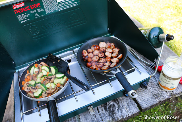 | Veggies sautéed with Coconut Oil and Trader Joe's Garlic Salt and Sausage ... one of my AIP breakfast staples. Yum! |