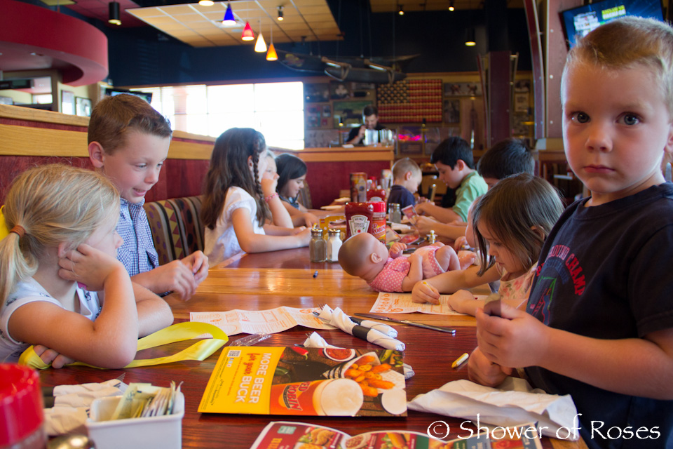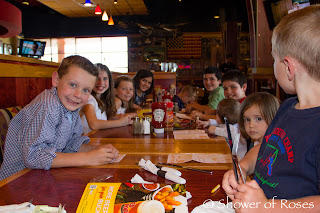 After that we met up with David and Ursula at Red Robin before heading home... The waitress was wonderful and not at all overwhelmed by our "4 adults and 13 children!"