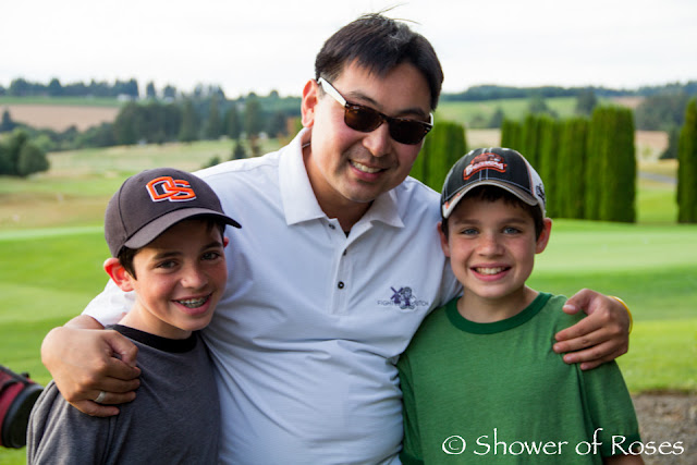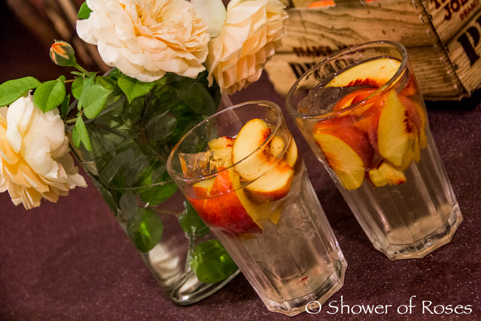 After dinner we headed to back to Ursula's new home (they moved this month and now live right next to the church!) to drink sangria and not worry about all decorations, food and desserts for the 200 guests! make a shopping list so I could go to Costco in the morning for food, drinks, and desserts for the reception, while Sean and the boys helped set up tables and chairs in the back yard. The Peach Sangria was awesome! Here is the recipe: