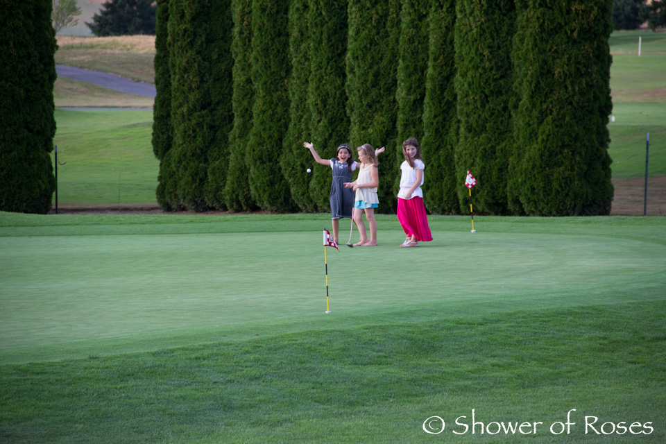 After arriving in town, and dropping off our suitcases and sleeping bags at the home of some friends who graciously offered to host us, we headed to the golf course to meet David & Ursula and their family for a fundraiser/bbq. My older girls were so excited to see one of their own best friends again and it was the perfect opportunity for me to hold the baby!