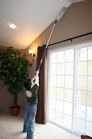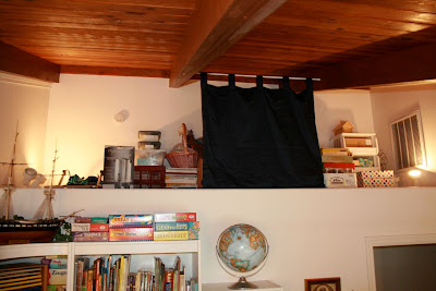 It looks kind of funny right now with just the one curtain hanging down in the middle, but what my children don't know is that behind that curtain are quite a few of their Christmas gifts all wrapped and ready for December.