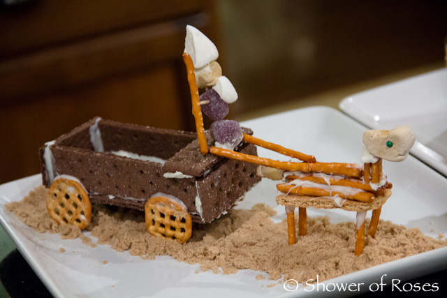 "Fifth, we make a camel because the wise men traveled over many miles of sandy desert on camels that they might find the young child."