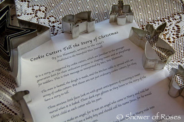 "My prayer is that my children shall never forget the cookie cutters and the story they told of Jesus, His birth and purpose."
