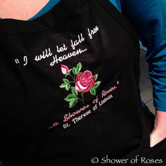 I love my pretty Catholic aprons.  I'm hoping to host another apron giveaway sometime soon!  The feast of St. Therese is right around the corner, after all! :)