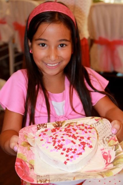 cakes to use for a Cake Walk, in honor of Twinkle Toes' patron saint - Saint Catherine of Alexandria! This would have been much easier if I owned more than just 2 heart shaped pans! ;) We frosted them all white and then decorated them with a variety of pink and white sprinkles from our stash.