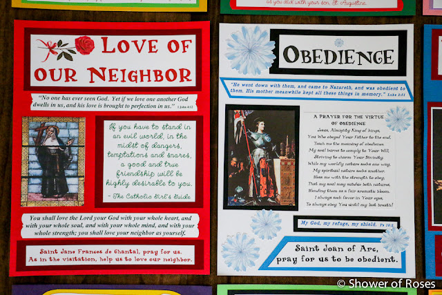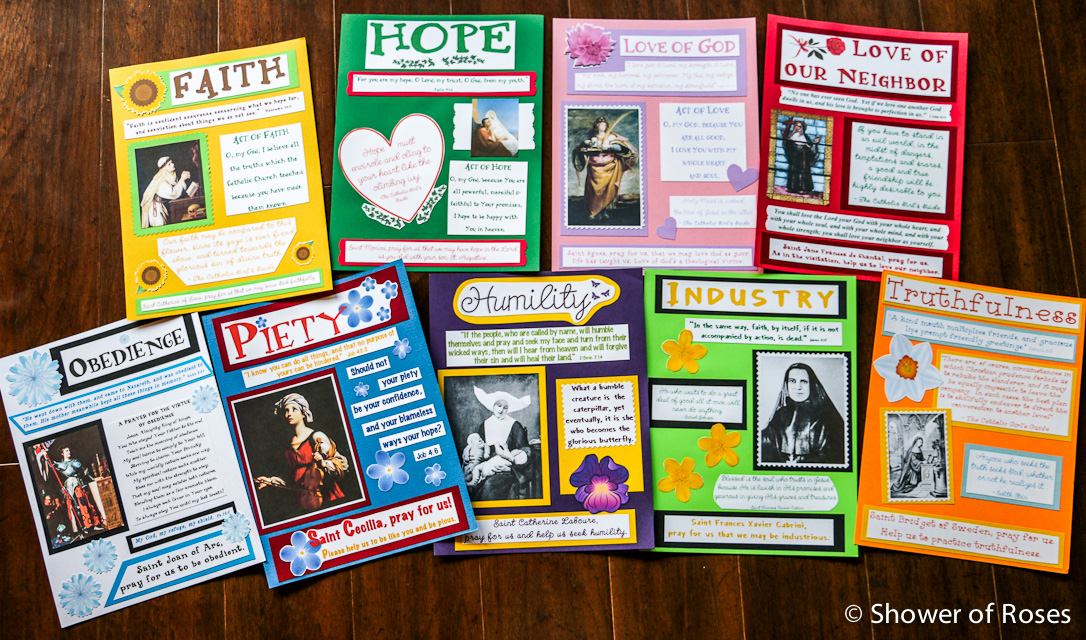 As usual we began our meeting with the prayer to St. Therese and the Acts of Faith, Hope, and Love. We then continued with a review of the virtue and saint we learned about at our