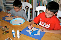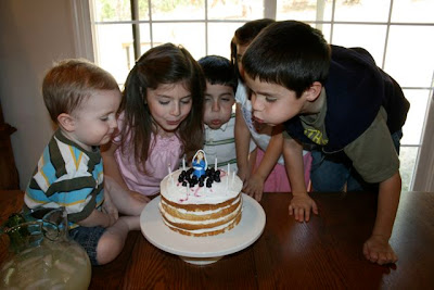(After 3 hours I finally gave up and sent the boys outside for a break. We all needed one...) I then realized that while I was working with the boys, the girls were having a little camp out in my bedroom and, in addition to the fort which had been made out of my bedding, I found smashed apple jacks all over the room. While I was cleaning that up, Chiquita managed to break a first communion gift of Captains. At nap time, Snuggles somehow got access to a blue permanent marker and decided to write all over his bedding and himself.